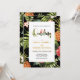 This unique tropical wedding invitation features a beautiful tropical pattern with golden typography.