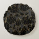 Black Gold Tulips: Luxury Floral Pattern Round Cushion