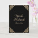 Umrah Mubarak Islamic Muslim Greeting Folded Card to give as a gift to couples, families and relatives. It has an elegant black background with a vintage gold scroll in the corner of the border. You can personalise the names of the people who went on the trip and the text that is written inside the card. You can edit the colour of the text, the size and font style as well. Created by Her Line For Design on Zazzle.