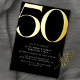 Modern 50th birthday invitations with a large heading "50" in real metallic foil. Your event details are printed below in matte white font. Contrasting gold-on-black for a sleek, gender neutral design.