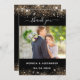 A modern wedding Thank You photo card. A black background decorated with faux gold glitter, sparkles. Personalise and add your photo and thank you note.