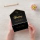 An elegant and unusual black and gold wedding invitation with detachable. RSVP.