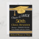 Super Sharp Black, Gold, White Personalised 50th High School Class Reunion Invitations or Your COLORS, YEAR and PRODUCT. CALL Designer Linda: 239-949-9090 EST to design your Personalised 50th Class Reunion Invitations. You, or CALL Designer Linda, can CHANGE the Black Background and White and Gold Text COLORS to your school colours.