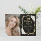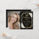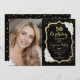 Elegant floral 50th birthday invitation with your photo. Glam black white design with faux glitter gold. Features white roses, script font and confetti. Perfect for a stylish adult bday celebration party. Personalise with your own details. Can be customised for any age! Printed Zazzle invitations or instant download digital printable template.