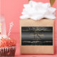 Make a lasting impression with this elegant product label design featuring shimmery soft glitter stars graphics and luxury gold lines on a black shimmer effect background.