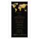 Black and gold world map travel theme menu card with a moveable and removable heart so you can pin your destination wedding location or theme, or delete it entirely for a global or general travel theme design.