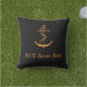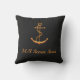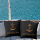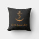 A classic black background. Decorted with faux gold anchor. Personalise and add the boat name.