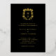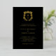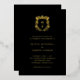 These simple and elegant wedding invitations feature a gold foil crest with your monogram or initials in the centre, and modern gold foil text on a dark, black background. A classy and modern look for your wedding celebration.