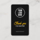 This simple and elegant thank you business card is the perfect way to show your appreciation to your customers. The design features a clean, Black background with a space for your logo and a handwritten "Thank You" message in a bold, red colour.