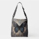 A beautiful and dramatic black butterfly on a grunge background creates a terrific crossbody bag.