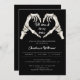 Black Gothic Love Halloween Bridal Shower Invitation. Minimalist Halloween themed bridal shower invitation featuring hand painted watercolor hand skeleton in shape of a heart, calligraphy script and simple clean design. Black background in front and back. You can personalise the wording, font style, colour and size in front and back of the invitation.