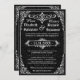 Here are Gothic Victorian inspired wedding invitations in black featuring ornaments, scrolls, scroll work, a banner, a floral scroll frame, damask pattern background, and other old world style details all inspired by the Gothic mediaeval period and Victorian era. Elegance and refinement at its finest. You can customise the sample text fields to your liking.