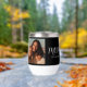 Celebrate motherhood in timeless style. This elegant black photo tumbler features the “Mom Established” script design — perfect for showcasing a favorite picture while keeping drinks warm or cold. A thoughtful keepsake for new moms or Mother’s Day.