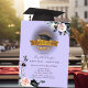 Black Grad Cap,Flowers Light Purple Graduation Invitation
