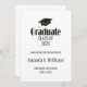 This is a simple and modern design with a black graduation cap, yellow gold tassel, black text and white background. Yellow gold is printed colour, not metallic foil.