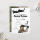 Yee haw! They're graduating and it's time to celebrate. This cute card includes a grouping of a cowboy boot topped with a graduation cap and surrounded with books, balloons, and that all-important diploma. Perfect for announcing their graduation ceremony or inviting people to the party to celebrate. Add your favourite photo on the back. Available in a neutral black along with the colours of major Texas schools. Matching products available.