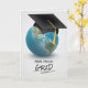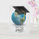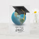 Black graduation cap on globe card