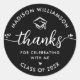 Black Graduation Modern Thank You Script Heart Cap Classic Round Sticker