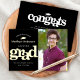 Announce to the world that your favourite grad has reached their milestone with this stunning, simple, modern, personalised announcement. Bold, stark, graphic, real gold foil grad typography and cap icon overlay a black background. On the right hand side, add a photo of your choice. Personalise the custom text with your graduate’s name, school name, and class year. On the back, under the bold “congrats” graphic, add your personal note, next school they’re attending, party information, etc. Matching and coordinating thank you cards, cap toppers, fans, napkins, plates, banners and other graduation goodies are also available in this trendy and stylish collection. Guaranteed to add stylish fun to their special occasion!