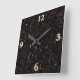 10.75” x 10.75” acrylic wall clock with an image of black granite with gold flecks.
