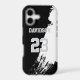 Add a name and number(s) to personalize this custom black, gray, and white, paint splash design, and sports jersey inspired phone case. It is an excellent gift for a sports fan or athlete. The options to change the color and font sizes are available.