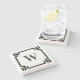 The coasters are gorgeous, a quality feel and heavy weight. They look like a precious archeological find. A rustic stone juxtaposed with a modern floral black and white print. I like the way the print goes slightly imperfect on the cut stone edges giving them a kind-of natural beauty.