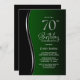 Invite your friends and loved ones with this modern black and green 70th birthday party invitation. The customisable text area in this invitation template allows you to effortlessly include all the necessary details for your special birthday celebration, including the date, time, venue, and RSVP information. A variety of paper types and corner styles are available for your unique invitations, along with the option to download if you prefer a digital format.