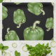 Modern kitchen town features a fun and whimsical green bell pepper pattern in a black and green colour palette. A stylishly fun and whimsical addition to your kitchen towel collection, thoughtful modern home gift for the cook in your life, or stylish kitchen gift for any occasion.