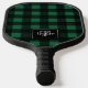 Black & Green Buffalo Plaid Check Monogram Initial Pickleball Paddle