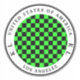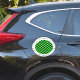The chequerboard pattern is black and green. The round frame is white with a thin black circle and the text is written in black colours.