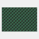Rustic wrapping sheets, perfect for Christmas and bachelor parties and birthdays, with three matching patterns in black and green: plaid, deer, and pine trees.