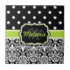 Elegant black and white damask pattern with polka dot pattern. This trendy girly gift features a black, green and white nameplate for your customisable name and monogram. This would make a cool birthday gift for girls or Christmas present for her. More colour options
