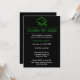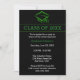 Simple yet stunning graduation party design features a green outline drawing of a mortarboard graduation cap. Below the graduation cap are two thin green lines. In between the green lines a place to customise with your graduating class year. Below is customisable text in white and green font where you can add your own graduation party details. The reverse side of the invitation has a solid black background with just the green graduation cap outline drawing in the centre. This design is perfect for someone graduating from a school with green and white or green and black school colours. Also for anyone that just loves green, black and white! Matching paper goods and favours also available!