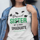 Beaming with pride of the success of your brother or sisters achievements! Then show them how proud you are with these personalised graduation ceremony t-shirts featuring falling mortarboard caps, the text "proud sister of a 2025 graduate", the grads name, and the colour green to represent their school or college colours.