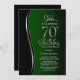 Invite your friends and loved ones with this modern black and green surprise 70th birthday party invitation. The customisable text area in this invitation template allows you to effortlessly include all the necessary details for your special birthday celebration, including the date, time, venue, and RSVP information. A variety of paper types and corner styles are available for your unique invitations, along with the option to download if you prefer a digital format.