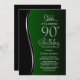 Invite your friends and loved ones with this modern black and green surprise 90th birthday party invitation. The customisable text area in this invitation template allows you to effortlessly include all the necessary details for your special birthday celebration, including the date, time, venue, and RSVP information. A variety of paper types and corner styles are available for your unique invitations, along with the option to download if you prefer a digital format.