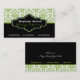 Black green white damask interiors business cards