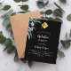 A classic black background, decorated with greenery. The blue colour is uneven. A golden cap with the graduation year. Personalise and add a name and party details.