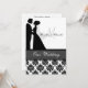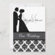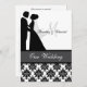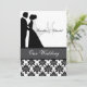 Black and white damask print with a grey band, a silhouette bride and groom, and areas you can personalise with your names, monogram initial, wedding ceremony and reception information on a customised wedding invitation that's classy and traditional all in one!
