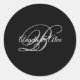 Black Grey and White Fancy Script Monogram Classic Round Sticker