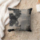 Modern throw pillow features an artistic abstract design in black grey and beige palette. An artistic abstract design features shades of grey and black on a neutral beige background. The lighter grey and black design elements compliment the neutral coloured background.