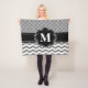 Show off your style in a fun way with this black and grey chevron and quatrefoil print monogram blanket.