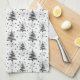Black & Grey Christmas Trees & Snowflakes Tea Towel