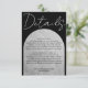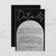 Cool black and grey wedding details card with arch headstone. Personalise it with your wedding details.
