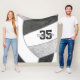 This cosy volleyball themed fleece blanket for her features the image of an abstractly oversized black, grey and white stylised volleyball that covers the entire blanket - personalise with the athlete's name and jersey number - by katz_d_zynes