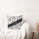 This cute volleyball team colours throw pillow for girls features a pattern of varied size stylised black, grey and white volleyballs turned every which way overlying a volleyball net detail graphic - the volleyballs' black and grey panels are blended with an artsy, girly floral pattern - personalise her name in a sophisticated handwritten font on a bold, angled, full width black colour strip - background and name strip colours are customisable - by katz_d_zynes
