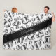 This cute volleyball team colours fleece blanket for girls features a pattern of varied size stylised black, grey and white volleyballs turned every which way overlying a volleyball net detail graphic - the volleyballs' black and grey panels are blended with an artsy, girly floral pattern - personalise her name in a sophisticated handwritten font on a bold, angled, full width black colour strip - background and name strip colours are customisable - by katz_d_zynes