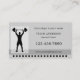 A modern appointment business card featuring a silhouette of a weight lifter on a grey design background. Perfect for a fitness expert or personal trainer.