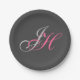 Black Grey Pink Monogram Simple Plain Paper Plate