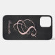 Modern elegant rustic abstract iPhone 12 Case. Black, grey, pink colours. Modern trendy fashion design. A text template is included to personalise with your monogram or text. You can also delete the sample monogram if you wish to order the phone case without text.